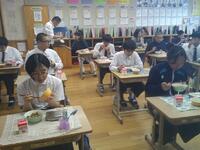 今日の給食は「五目寿司」と「豆腐のすまし汁」でした五目寿司には、にんじん・しいたけ・れんこん・かんぴょうなど、彩り豊かな具材がたっぷり入っており、ほどよい甘酸っぱさが口いっぱいに広がりました。豆腐のすまし汁は、やさしい味わいで、五目寿司との相性もぴったり。秋の味覚を感じながら、季節を味わう給食となりました