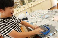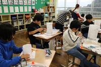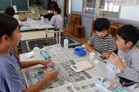 図工の授業「ほり進めて刷り重ねて」の題材にチャレンジしています!今日は、自分のランプシェードに必要な図柄をカッターを使ってほり進めていました。一生懸命に取り組む姿がみられました。できあがりが楽しみですね!