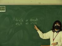 今日はハロウィンですね。小学1、2年生は29日(水)にチエミ先生と楽しいハロウィンをしました!「おかしをくれなきゃいたずらしちゃうぞ!」の英語「トリック オア トリート!」をチエミ先生や他の先生と自然に発しながら、ハロウィンをしました。みんな、チエミ先生からごほうびにハロウィンシールをもらい、喜んでいましたね。
