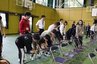 今日は、中学部のお兄さんやお姉さんと協力して、小学5、6年生の皆さんも会場作りに励みました(*^_^*)。保護者席をメジャーに合わせてていねいにイスを並べる作業を根気強くがんばりましたね。
