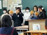 校長先生作成の『大谷翔平クイズ』を中学部1年生に出しながらグローブを紹介したのは4年生でした。