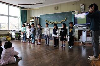 閉会式では、校長先生が、小学生のときの経験が大人になっても役立つことや、一緒に練習をして頑張ることができた嬉しさ等を話されました。校長先生もこの日のために子どもたちと練習してこられたのですが、雨で延期になり県立高校推薦入試と重なったため、閉会式だけの参加となりました。残念!!