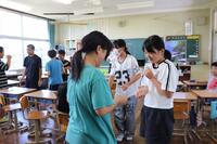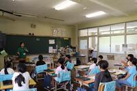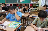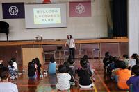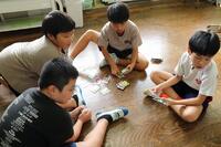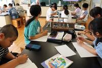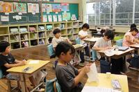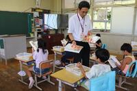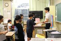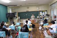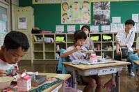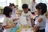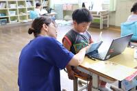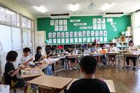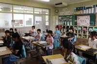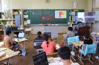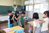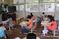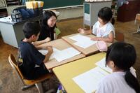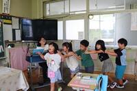 あさってからまちにまった夏休みです!それぞれの学年の授業をのぞいてみました。まずは1年生、「お楽しみ会」を開いていました。いす取りゲームや的当て、宝探しに夢中の1年生。お世話になった支援員の先生にも日頃の感謝を「手作りアサガオうちわ」でお礼をしました。