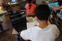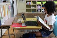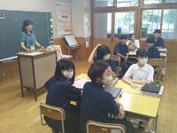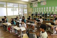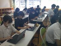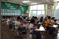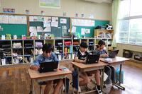 4年生の教室は、全員がタブレットを使って夏休みのオンライン登校(小4は8/20)のための準備をしていました!当日は、みんな寝坊しないで、森永先生のクラスルームに参加できるといいですね!