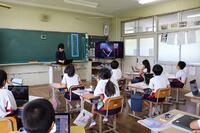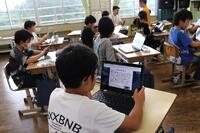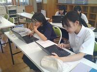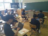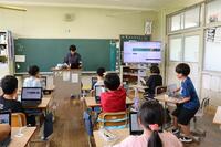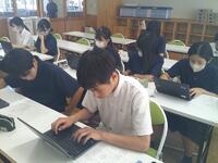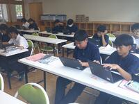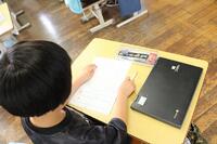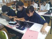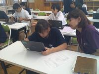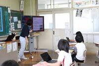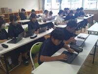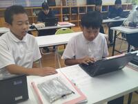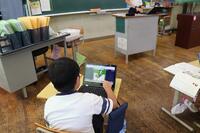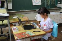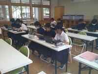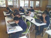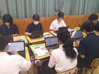 5年生は、社会科や先月学んだ「田植え」についてタブレットにテキストを貼りながらまとめる勉強をしていました。