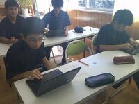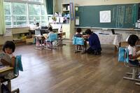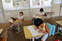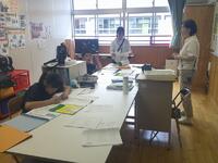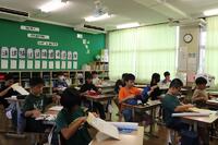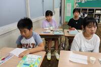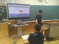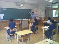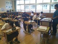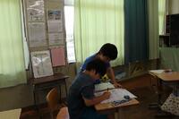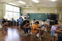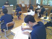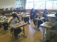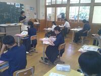 5年生は、単元テスト(少数のかけ算で面積を求める問題)などにチャレンジしていました。とにかく真剣、解き方をマスターするために教え合いもしていました。すごいぞ5年生!