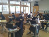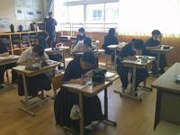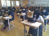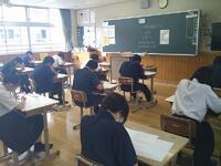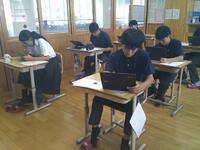 教育相談に向けての事前アンケートを、朝の時間に実施しました。静かな時間を使って自分の気持ちや希望をじっくり考えながら記入する姿が見られましたにっこり