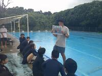 水を怖がらなくなった1年生、一生懸命にバタ足で泳ぐことができるようになった2年生、今日の納会は、今までのおさらいを先生方がしてくださいました。水慣れ、ヒトデ浮き、かにさん歩き、バタ足、記録会、、、本当にたくさんの活動ができましたね。