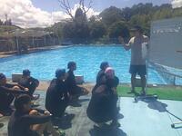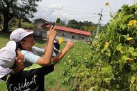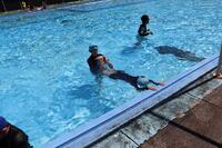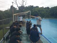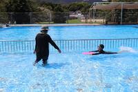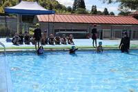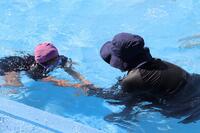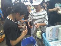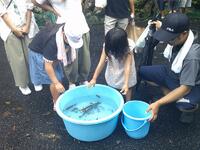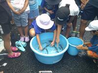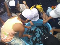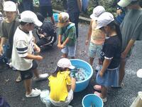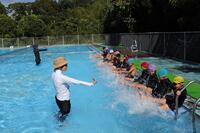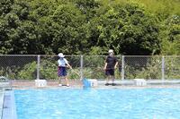 今日の見学者もプールの中の葉や虫など丁寧にすくって、泳ぎやすい環境に協力してくれました。