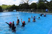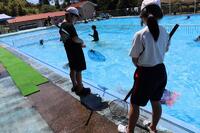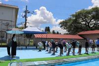 中学校1年生、最後のプール授業。炎天下の中、しっかりと熱中症対策をしながら、水しぶきを上げて気持ちよさそうに授業を楽しみました興奮・ヤッター!