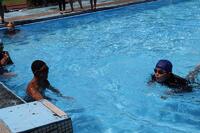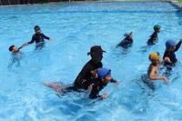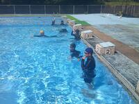 本当に今日は特別な日!6年生が使用している大プールに初チャレンジをしました。「こわっ」「深いよ~」の声があちこちから聞こえましたが、だんだん慣れてきて、「10秒もぐり」や「ラッコさん」もできるようになりました。