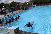 次は小学3・4年生です!それぞれにはなりますが、顔をつけてバタ足をしてクロールをする児童が増えました!先生方も1人1人についてくださり、クロールの泳ぎ方と息継ぎの仕方を丁寧に教えてくださっていました。