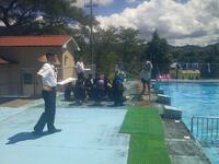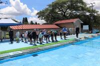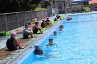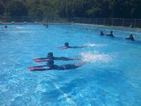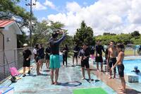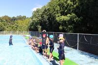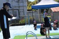 今日は納会でした。これまで事故なく楽しく水泳ができたことを感謝して、プールに向かって全員で「ありがとうございました」とおおきな声であいさつをしました。そして毎回見守ってくださった保護者にもあいさつをしました。