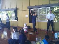 2年生は、学活で「アサーティブな表現(相手を尊重し、自分の意見を言う)」についてジャイアン、のび太君、しずかちゃんのお面をつけて1人1人練習をしていました。西山先生と保健室の先生も優しく教えてくださいました。
