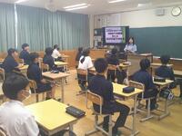 2校時に「薬物乱用防止教室」を実施しました。宮崎県警察本部生活安全少年課延岡地区少年サポートセンターの興梠さん、湯田さん、甲斐さん、石本さんをお招きし、麻薬・大麻・危険ドラッグの恐ろしさについて、実話を交えながら分かりやすくお話しいただきました。「たった一度の使用でやめられず、心身がむしばまれ、人生が崩れていく」という言葉が強く印象に残りました。また、未成年者の飲酒や喫煙の危険性についても学び、命や健康を守る意識を高めることができましたにっこり