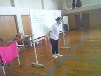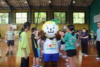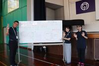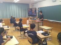 2027年度に開催される宮崎県国スポ・障スポ大会に先駆けて、今日は大会イメージソングダンス授業を行いました。県の方から3名の指導者と県民なら誰もが知っているキャラクターがサプライズに来てくれました。③④校時を使い、イメージソングの1番を班ごとに創作ダンスを取り入れ、仕上げていきました。タブレットを使って、本市で開催予定の「パワーリフティング」を調べ、ホワイトボードに発表し、班員で選び、創作ダンスにするという流れでした。上南方っ子のパワー全開でしたね。今日の様子は10月頃、国スポ・障スポのインスタグラムに掲載するそうです。