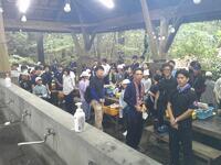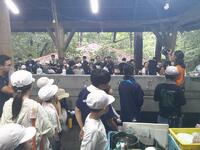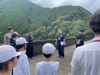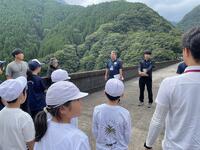 午前中の自然体験を終え、祝子川温泉へ移動しました。温泉内の食堂では、わっぱ弁当やきこり焼き、竹の皮に包まれたおむすび、温泉で蒸したゆで卵をいただきました。疲れが一気に吹き飛ぶ格別のおいしさでした興奮・ヤッター! 昼食後には、温泉での取組や森林再生、地域活性化についてのお話をうかがい、地域の方々の工夫や努力に触れることができました。最後のフィールドワークは祝子川ダムを訪れ、実際に施設内に入り、説明を聞いたあとに見学を行いました。ちょうど放流の様子も見ることができ、子どもたちにとって忘れられない貴重な体験となりましたキラキラ