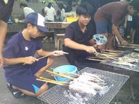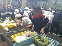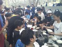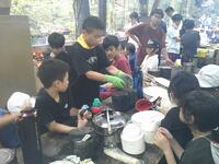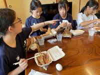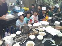 キャンプ初日はあいにくの雨となり、室内での活動が中心となりました。野外炊飯では、縦割り班で協力しながらカレー作りに挑戦。時間はかかりましたが、みんなで力を合わせて仕上げることができました興奮・ヤッター! 夜にはむかばき青少年自然の家の体育館でのレクリエーション。小学校と中学校が協力し、学年を超えた交流を楽しみました。最終日には、子どもたちが楽しみにしていたマスのつかみ取りと調理体験。割りばしでさばいたマスを竹串に刺し、保護者の方々が準備した炭火で焼き上げたマスは格別の味でした。ただ料理を学ぶだけでなく、「いのちをいただく」ことについても話がありました。食べることは、ほかのいのちをいただいて自分のいのちをつないでいるということ。子どもたちは、調理を通して食材への感謝の気持ちや、命の大切さについて考える時間をもちました。ごはんの炊き方も、前日よりぐんと上達!自然の中での様々な体験を通して、子どもたちはひとまわりたくましくなったようです笑う 活動を実施するにあたり、学校レクリエーション部の皆様の多大なるご協力と保護者の皆さまのご理解とご協力をいただき、本当にありがとうございました。また送迎などでご迷惑をおかけしたこと、心よりおわび申し上げます。温かいご支援に、心より感謝申し上げます。