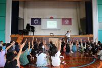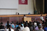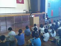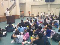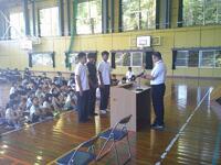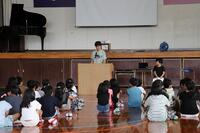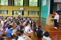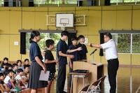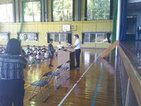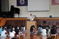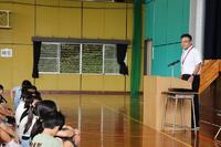 井上成二郎校長先生の話では、学年ごとに頑張りや取り組んでいたことを語りかけるようにお話しくださいました。そして「いのち」については、絶対に守って夏休みをすごしてほしいと話してくださいました。