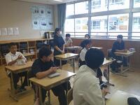 10日(水)はあいにくの雨となりましたが、2・3校時に中学部のフリー授業参観に多くの保護者の皆さまにご参観いただき、心より感謝申し上げます。当日は、生徒たちがいろいろな活動に意欲的に取り組み、グループでの話し合いや発表など、活発に学習する様子を見ていただくことができました。保護者の皆さまに見守られ、いつも以上に張り切って学ぶ姿に、教職員も嬉しく感じる時間となりました笑う