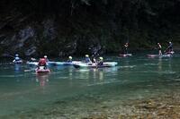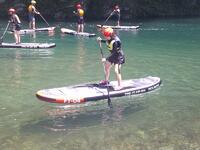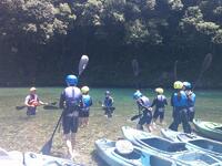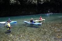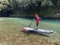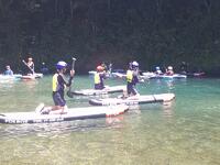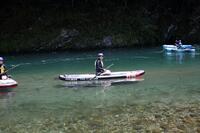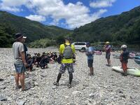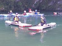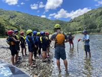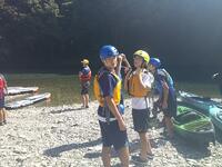 中学部3年生と1年生は、北川水系の小川でリバーカヤック体験を実施しました。学校のプールとは違い、流れの速い場所や冷たい水に触れながら、生徒たちの元気な声が山に響きました。ライフジャケットを着用し、安全対策を徹底した上で、サップやカヤック、水難救助を体験し、水の事故防止と自然の大切さについて学びました興奮・ヤッター!