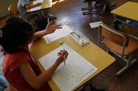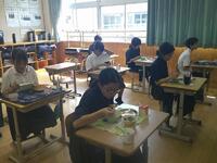 6年生は、算数の円の面積テストに真剣に取り組んでいました。