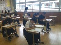 中学部家庭科の授業では、ミシンを使った作品づくりに挑戦しました。最初は「できるかな…」と心配そうな表情もありましたが、はげまし隊の先生方に支えていただきながら、少しずつ上手に進められるようになりました。集中して作業に取り組む姿は、とても頼もしく感じられました笑う