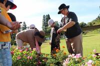 さあ、いざ放水!スゴイ勢いで水が出てきます。しっかりとホースを持っておかないと水の力に負けそうになります。
