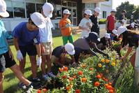 暑い日が続いたかと思えば、今週は激しく降りつづく雨、そんな天候に応じて、日々を一生懸命に、児童生徒をはじめとする本校の環境整備に力を注いでくださる技術員の方に、心より感謝申し上げます!人権の花運動の看板の設置、グラウンド芝刈り、学級園の耕し、校内の設備整備等、挙げれば次々とでてきます。本当にありがとうございます(*^_^*)