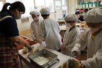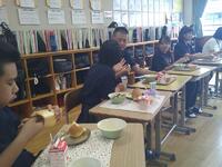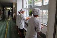 毎日、丁寧に、静かに、気持ちよくみんなで協力して、給食の準備を行っています笑う