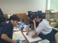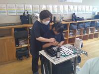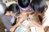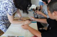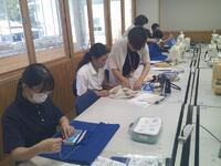 集中して一針一針、ていねいに。先生方に支えられて、笑顔でがんばりました興奮・ヤッター!