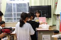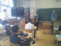 市役所から2名の先生が講師として来校してくださいました。最初に「税金は必要かどうか」の問いに「Yes、No」で自分の考えを答えてから、みんなで動画を見ながら「税金」について一生懸命に考えました。