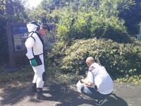 旧南方中学校の校門付近、竹藪の奥にあったスズメバチの巣を駆除しました。(薬も散布しております。)また、近くの木には毛虫が付着していました。安全のため、数日は竹藪や周辺の木の近くに近づかないようにお願いいたします。ご協力をお願いいたしますにっこり