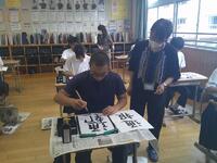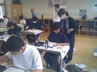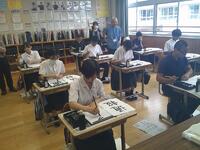 本日、中学部では2回目となる書写の学習を行いました。今回は「はげまし隊」の先生方5名にお越しいただき、全学年を対象にご指導いただきました。一人ひとりの筆の運びや姿勢に丁寧に助言をいただき、生徒たちは真剣な表情で取り組んでいました。専門的なご指導のおかげで、文字への関心や表現の幅がさらに広がる貴重な時間となっています笑う