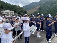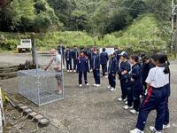 中学部1年生と小学部5年生が、祝子川渓谷で自然体験活動を行いました。大崩の茶屋では山の成り立ちや狩猟のお話を聞き、祝子川キャンプ場では清らかな川の流れを間近に観察。さらに田畑では、鳥獣被害やそれを乗り越える知恵について学びました。山での暮らしにある苦労と工夫を知り、生徒たちは川や田畑で自然と人のつながりを体感、大きな発見をしていました笑う