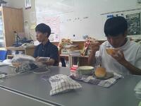 給食の時間には、みんなで机をつなげて輪になり、にぎやかに食べています。友だちと顔を合わせながら「おいしいね」「このおかず好き」と声をかけ合うと、自然と笑顔が広がります。みんなで同じものを一緒に食べると、ひとりで食べるときよりももっとおいしく感じられ、心もおなかも満たされる楽しいひとときになります興奮・ヤッター!
