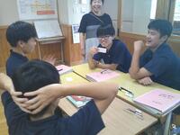 7/28(月)⑤校時の中学部ミニ討論会では「ポケモンとワンピースはどちらがいいか」というテーマで話し合いました。それぞれの作品の魅力や、「もしその世界に行けたらどうするか」について意見を出し合い、全員が1回以上発表することを条件に進めました。しかし、時間が足りず十分に話し合えなかったり、発表でPREP法がうまく使えない場面もありました。次回は、より時間を確保し、PREPを意識して、もう一度挑戦したいと考えています。