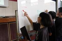 中学部1年生の数学では、連立方程式の「加減法」に挑戦中です。式をうまく組み合わせて解けたときには、「やった!」とうれしそうな声も笑う 工夫しながら学ぶ姿が見られました。