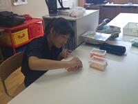 アイロンビーズ作りに取り組む準備を進めています。作成に先立ち、まずビーズの色を選定し、種類ごとに分ける作業を行いました。コツコツと一つひとつのビーズを仕分けながら集中して作業に取り組み、その手際も回を重ねるごとに上達してきています。色分けのスピードも徐々に上がり、スムーズに進む様子が見られました笑う10月から、実際のアイロンビーズ作成をスタートします。準備作業を通して培った丁寧さや集中力を生かし、完成に向けて楽しく取り組んでいきますキラキラ