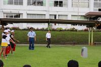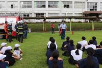 このような体験の場を与えてくださった延岡消防署の隊員の皆様、本当にありがとうございました。代表の児童生徒がお礼の言葉を述べました。これからも1人1人が避難についてしっかり行動できるようにしていきたいです。