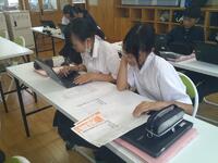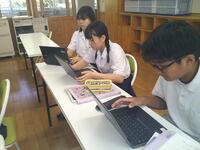 いちいがし発表に向けて、思考をこらしながらプログラム(チラシ)作りに取り組んでいます情報処理・パソコン色や字体、デザインの工夫を重ね、他学年の作品も参考にしながら、より見やすく、楽しいチラシになるよう工夫しています。発表当日までに、どんなデザインが完成するのか、生徒たちの創意工夫が楽しみです笑う
