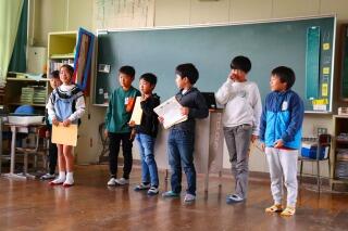 5年生『もち米ヒストリー』これまでのお米学習を劇等で刃L票してくれました。