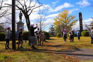 昼食は、城山公園でいただきました。とても風が強く寒かったのですが、みんな元気いっぱい