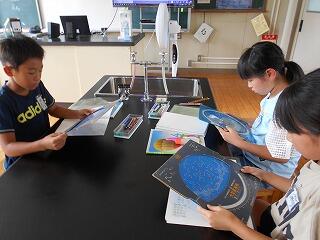 4年生は、今、理科で夏の星座を学習しています。今日は、初めて手にする星座早見盤とにらめっこ。