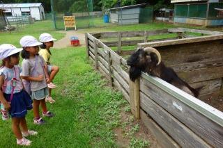 ダチョウ園ということで・・・。外には2羽のダチョウがいました。子どもたちは、「くびがながい~!!」「水ののみかたがすご~い!!」と大喜び。
