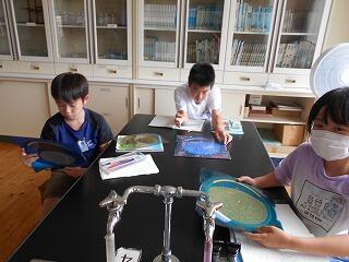 理科室には空調設備がありません。扇風機2台、サーキュレーター2台をフル稼働しても、温かい空気をかき回すだけなのですが、その暑さにも負けず、汗をダラダラ流しながら見入っている姿に感動しました。