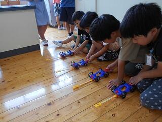 『風やゴムの力で動く車大会』と題してレースを行っていました。
