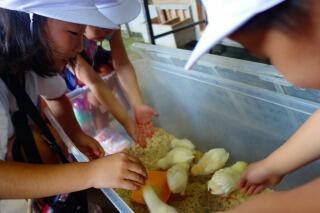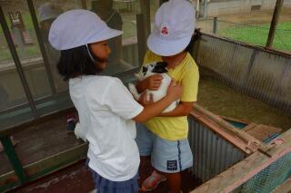 外にもうさぎ小屋があり、みんなやさしくだっこしては、かいがっていました。