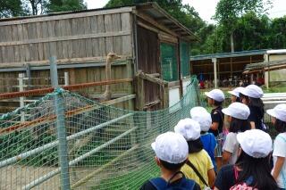7月21日(金)9時過ぎ学校出発!!1、2年生が生活科でダチョウ園に行きました。