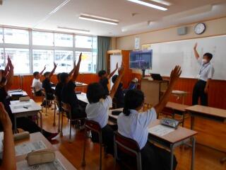 「やりたい人!!」のかけ声に、元気よく手をあげる3年生。